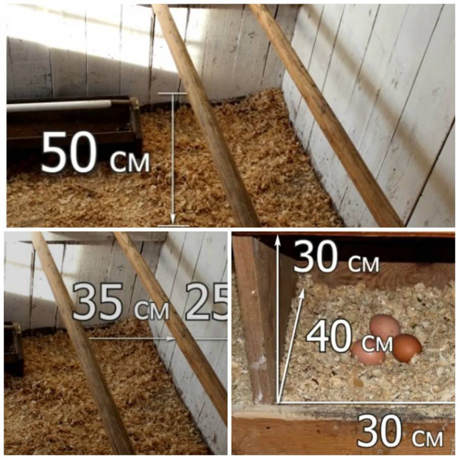 - Для ночного пребывания курам нужны насесты (20—25 см на одну несушку).