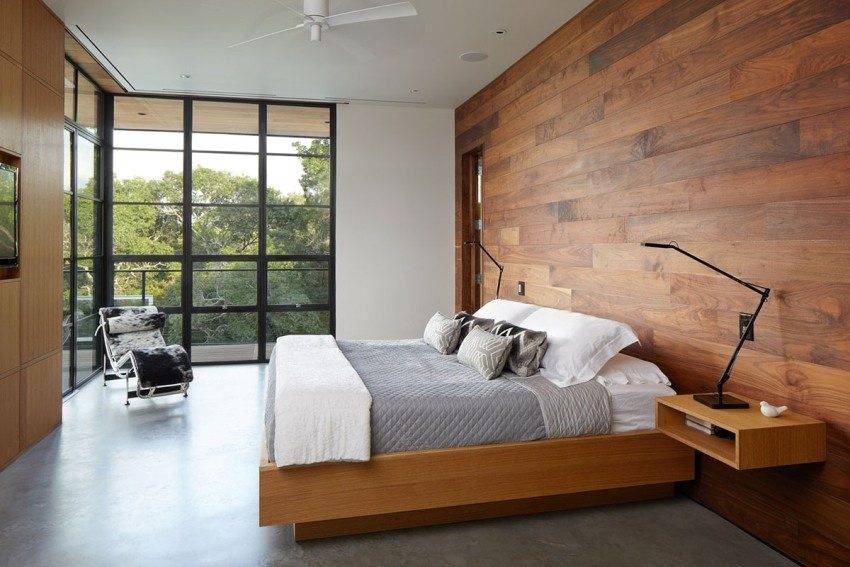 Достоинства и недостатки дизайна спальни с ламинатом на стене