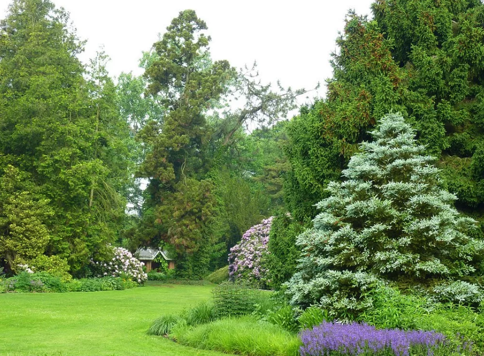 Виды хвойных деревьев разнообразны. Среди них выделяется своим оттенком ель. Она голубого цвета, вырастает в длину до 10 м. Крона в диаметре у взрослого экземпляра составляет 3-4 м.