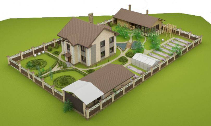 - Проект участка составляется с учетом стоимости. Бюджет влияет на выбор материалов, количество и качество построек.