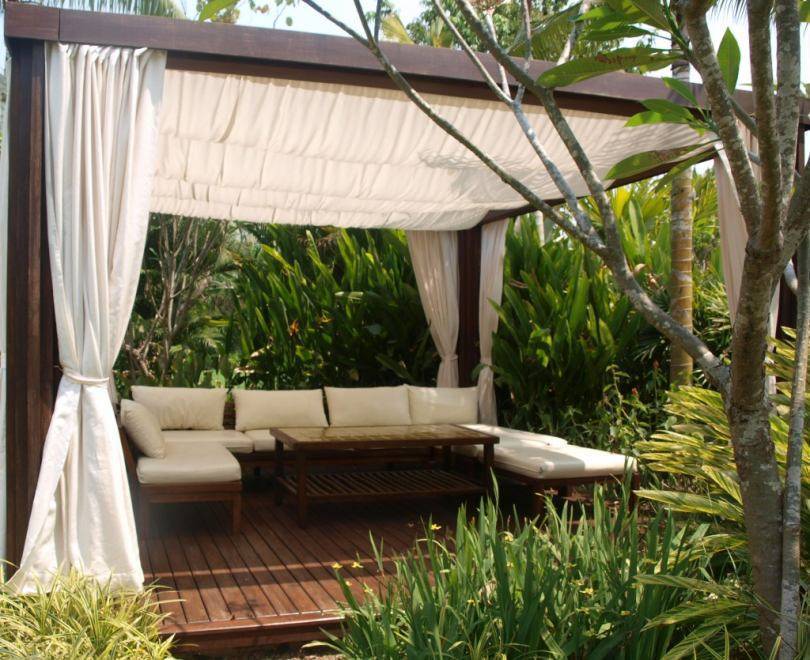Рекомендуемая площадь этого здания — 10% от общей. Если нужен коттедж, дача или дом большего размера, тогда лучше подумать о втором этаже или обустройстве террасы, переходящей в зону отдыха.
