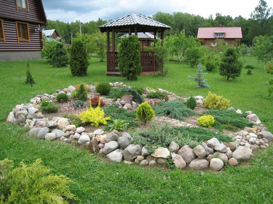 Теперь пришло время подумать о размещении украшений для участка. В первую очередь это клумбы и цветники. Они строятся быстро, засаженные однолетниками уже в первый же сезон будут вас радовать, пока все остальное еще в процессе строительства и до красоты еще далеко. Более долгое дело — устройство альпинариев и рокариев. Натаскать и уложить пару-тройку тонн камней — дело не шуточное, у тому же они засаживаются, в основном, многолетниками, окончательный облик принимают только через три-четыре года. И то, только при условии, что вы сразу все насаждения выбрали и высадили правильно, что без опыта — небывалая удача.