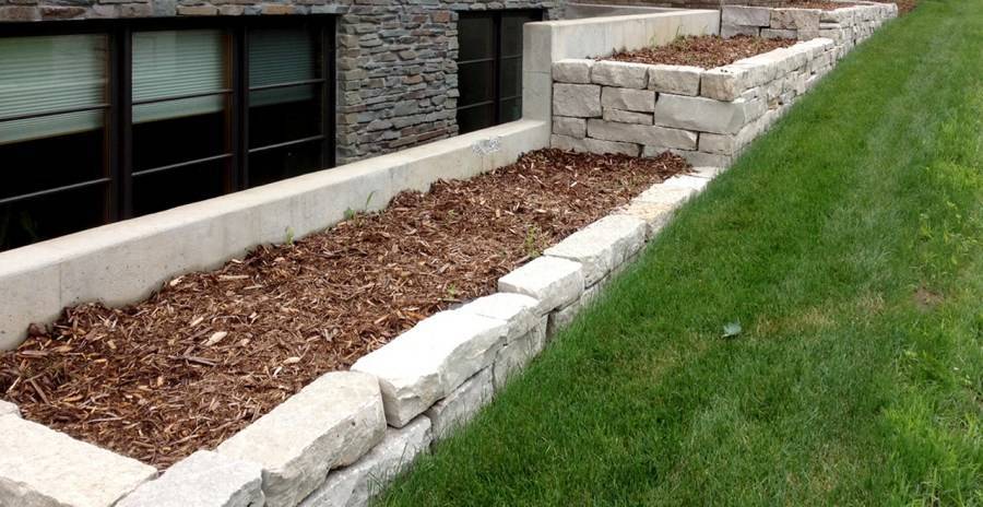 Качественное преображение территории в саду можно увидеть на фото клумбы из камней, выложенной в форме террасы. В качестве материала применяют кварц, базальт или гранит, обладающие повышенной прочностью. А известняк с песчаником помогут сформировать горный вид.