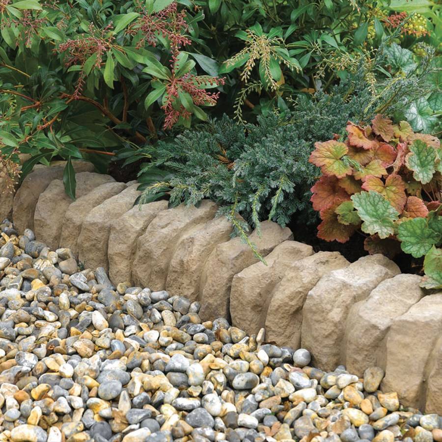 Обычная композиция, оформленная с использованием данного материала, обладает четкостью форм и границ. При изготовлении применяется бордюр, который выкладывается булыжниками одним или несколькими слоями.