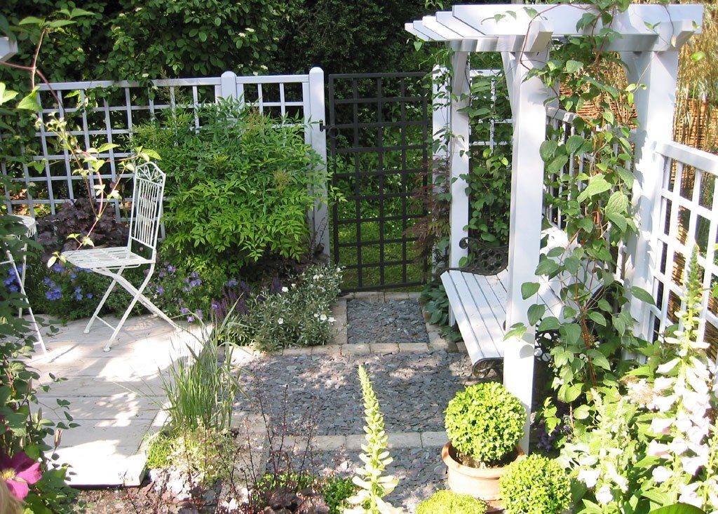 Чтобы участок не просматривался весь сразу, установите несколько пергол, увитых лианами. Таким образом, взгляд, задерживаясь на встречном объекте, медленнее будет перемещаться по остальной территории.
