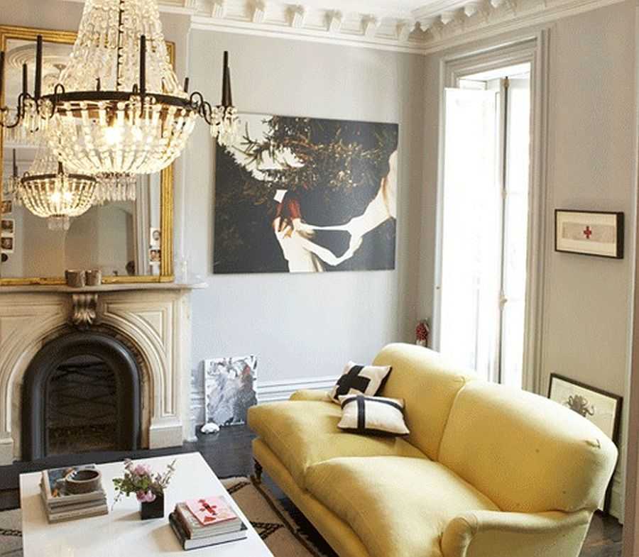 Интересно лепнина может смотреться и в современных интерьерах. К примеру, несколько лепных элементов светло-желтого оттенка будут гармонично выглядеть над диваном гостиной в скандинавском стиле.