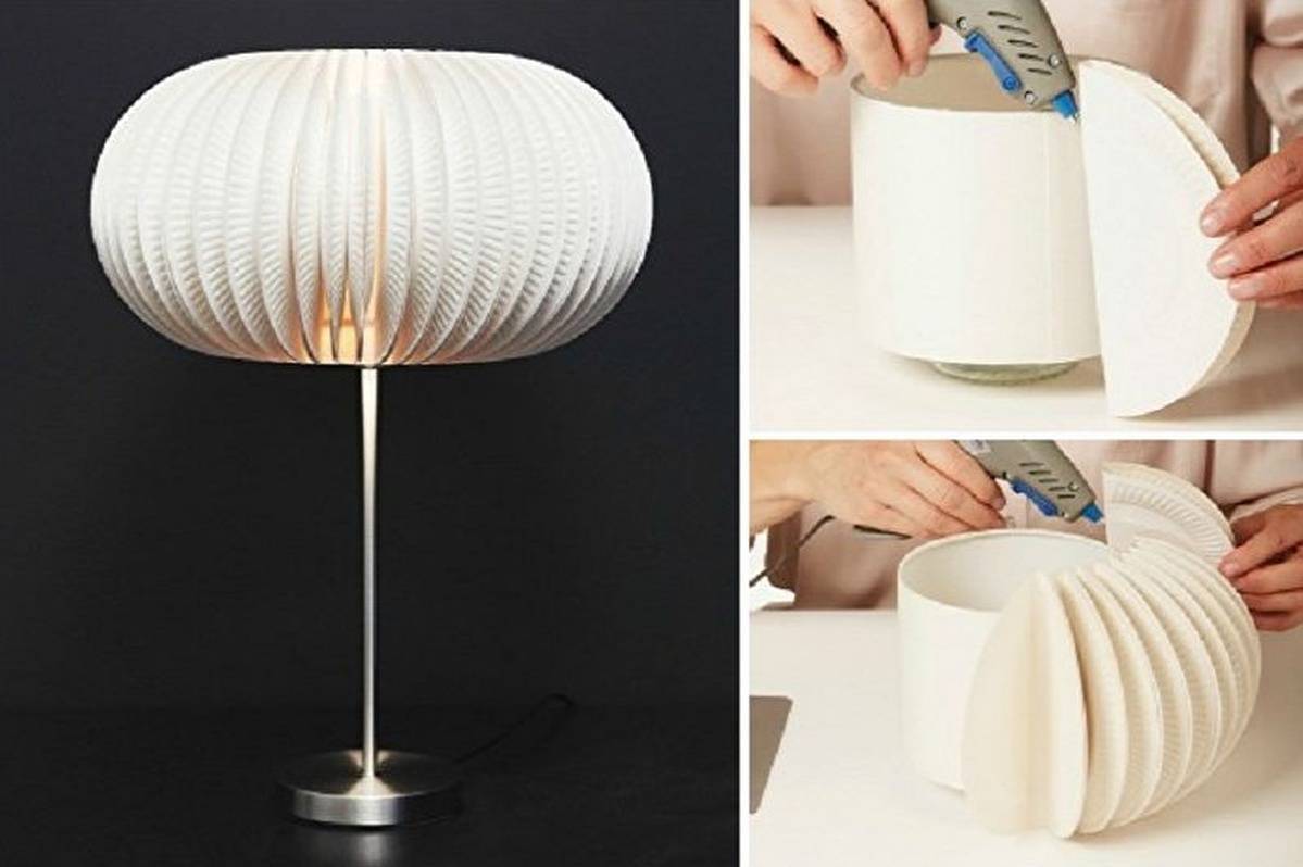 — Настольные светильники. Конструируются абажуры с использованием техники плетения или путем закрепления на уже имеющейся основе витиеватых бумажных тарелок. Смотрится очень стильно!