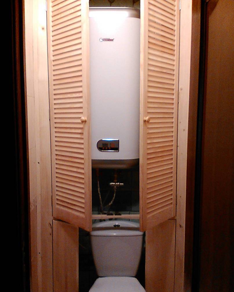 На фото решетчатые дверцы, закрывающие бойлер для подогрева воды