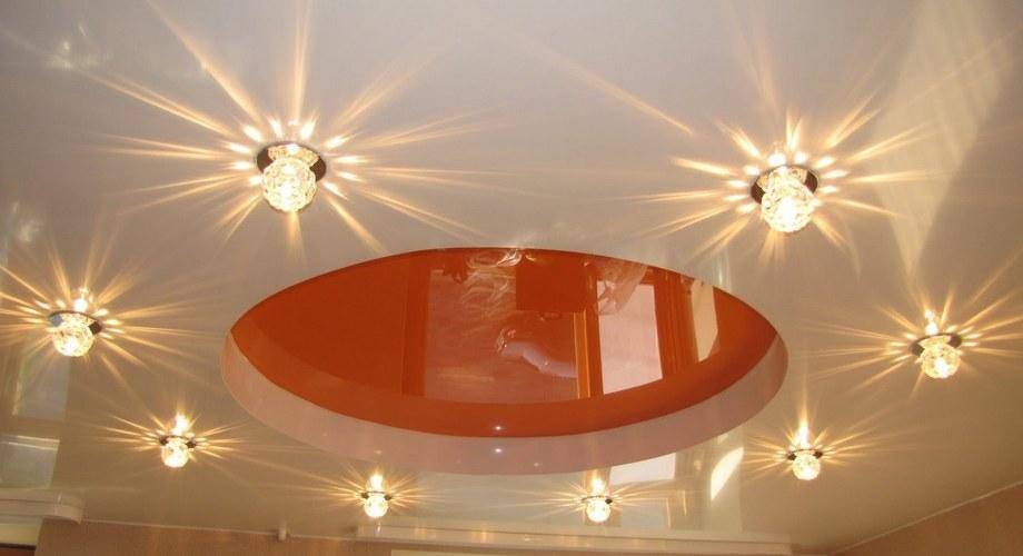 Вид осветительного прибора зависит от материалов, из которых выполнен потолок.