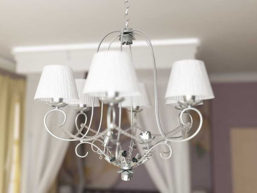 если поверхность потолка несовершенна, то лучше, чтобы свет от ламп в люстре был направлен вниз, поэтому и ее конструкция должна быть соответствующей;