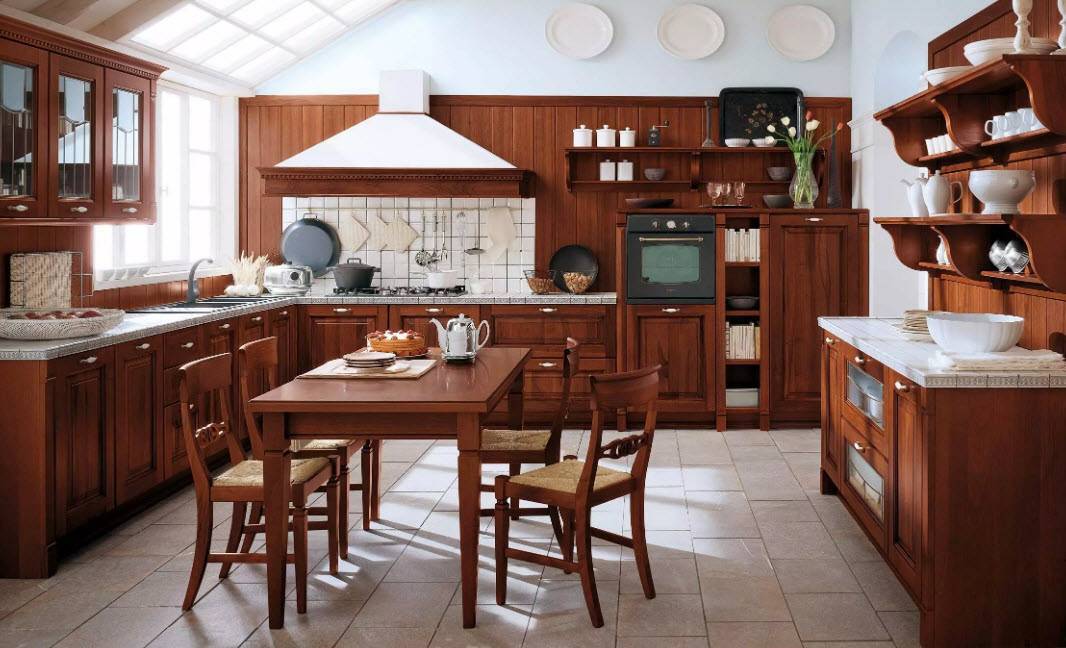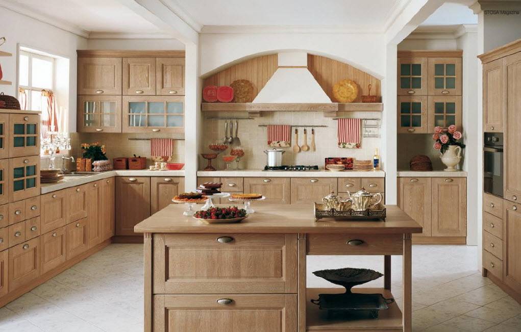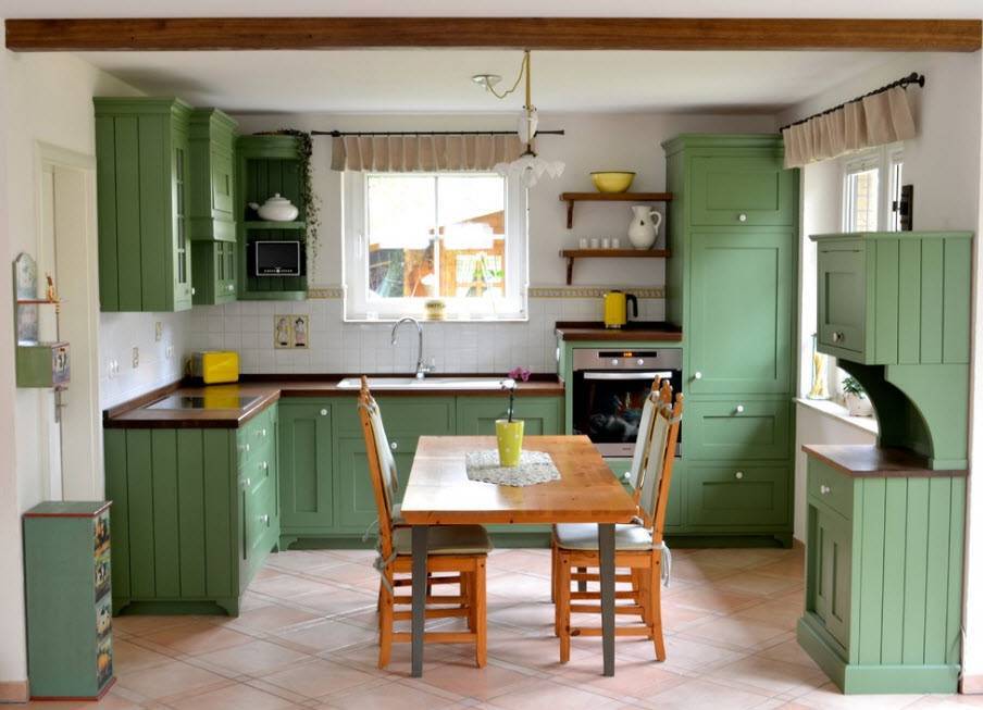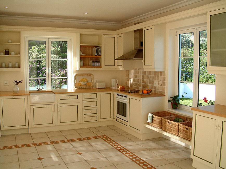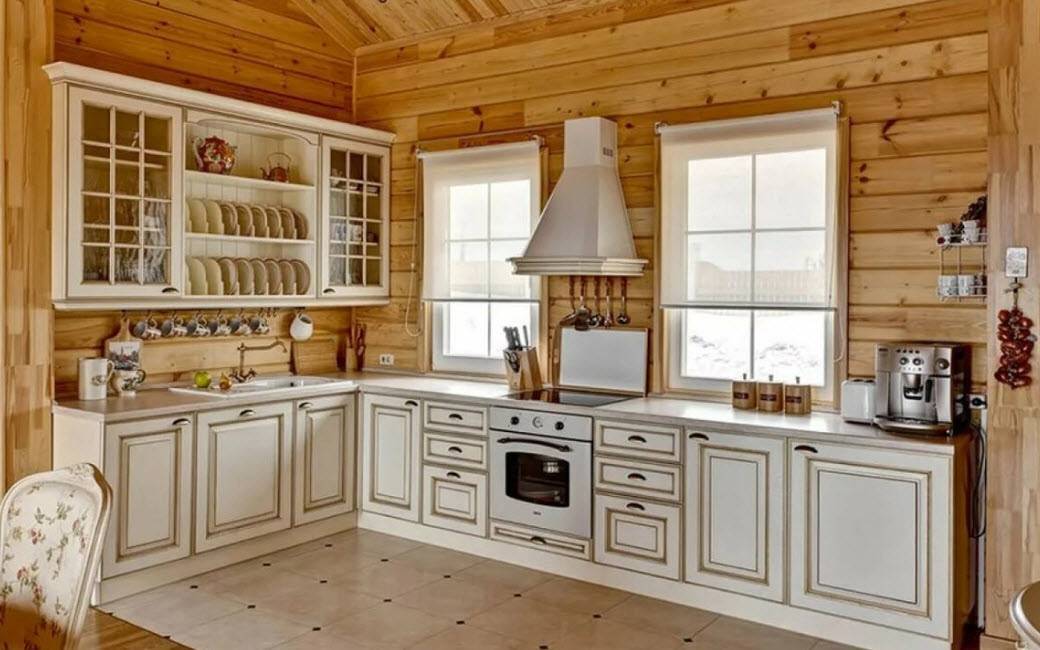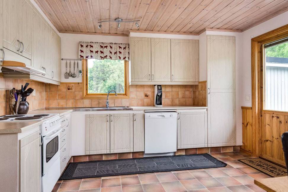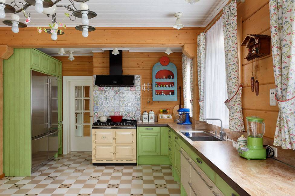 Чаще всего для отделки пола используют паркет, линолеум, декинг, ламинат или керамическую плитку. Если потолки и стены сделаны из древесины, их следует обязательно покрыть слоем олифа, которая поможет предотвратить воздействие сырости на материал. Не забывайте, что и интерьер должен радовать глаз хозяйки, и тогда на кухне будет уютно и комфортно, поэтому займитесь выбором гарнитура по своему вкусу, и конечно же, с учетом финансовых возможностей.
