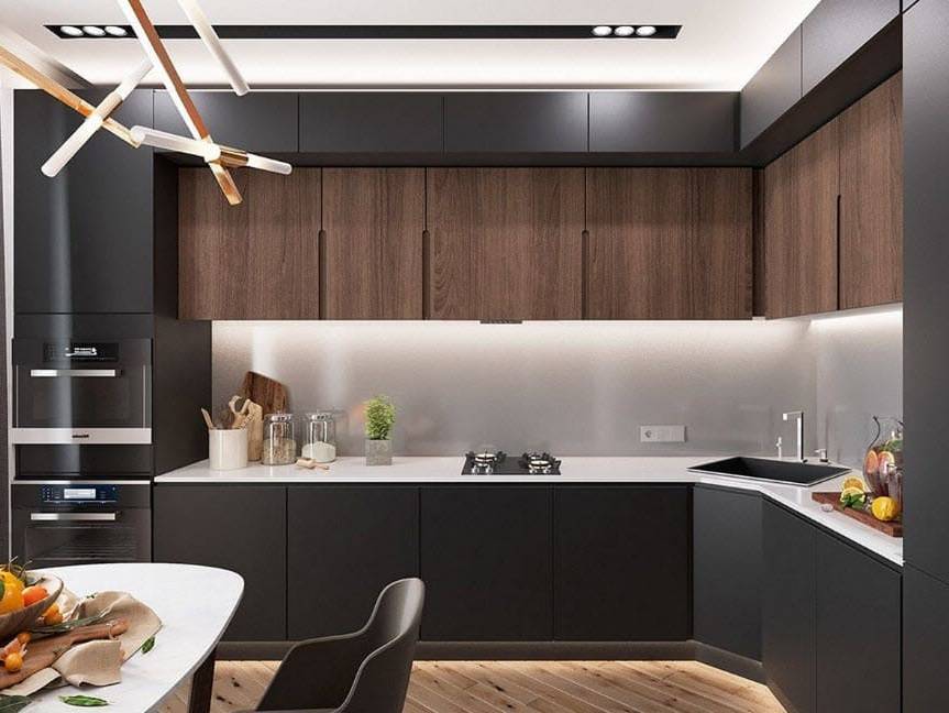 - Требует больше места, нежели прямая, поэтому неактуальна в случаях, если на ней редко готовят и не нужно много шкафов для хранения утвари;