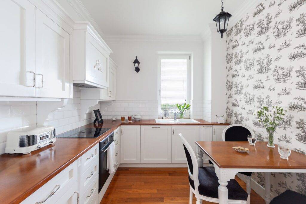 Благодаря этому вы можете легко поставить традиционную белую кухню без верхних шкафов в английском стиле или совместить эту тенденцию с современным, ретро или гламурным стилем.