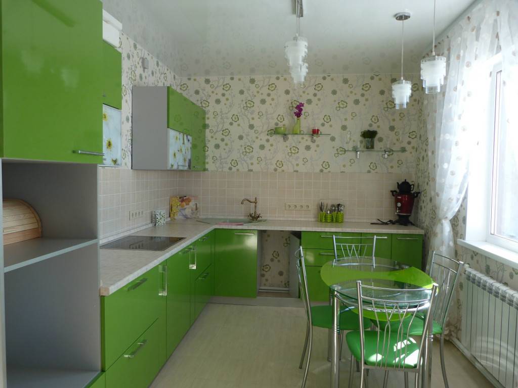 И не стоит бояться ярких цветов! К тому же глянец позволит хоть немного, но расширить пространство малогабаритной кухни.