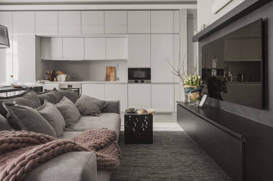 В независимости от размеров помещения, модульная мебель будет представлена как стильный акцент интерьера. Модель состоит из нескольких частей, которые могут комплектоваться дополнительными полками для хранения посуды, или выдвижным мини – баром. По желанию модули ставят рядом, или в разных углах комнаты. Покупая такую конструкцию, убедитесь, что ее каркас сделан из прочных материалов. Так как постоянная трансформация некачественной мебели приведет к скорой поломке.