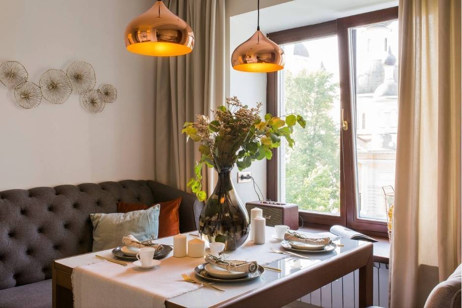 Для маленькой кухни подходит именно мини-диванчик. Он обязательно должен быть компактным