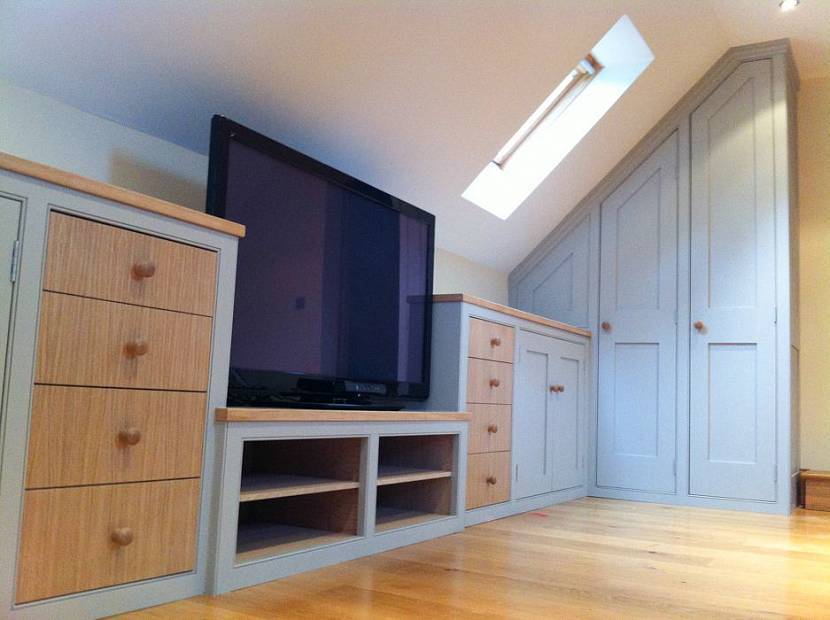 Совет: в местах, где потолок мансарды находится слишком низком, можно расположить ниши для хранения вещей, различные модульные шкафчики, стеллажи.