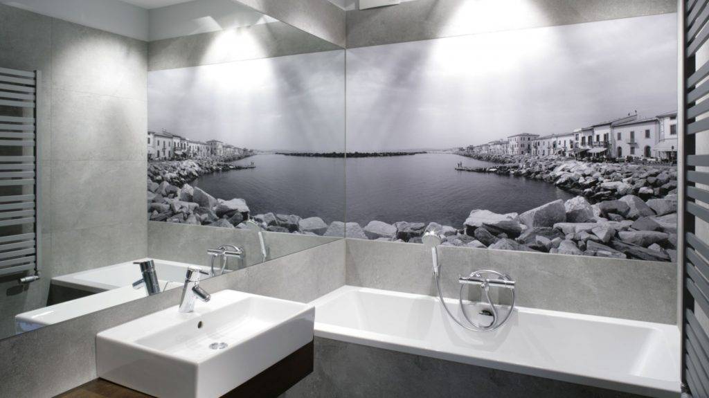 Широкоформатная печать делает сегодня в тренде. Благодаря цифровым технологиям вы можете печатать отдельные фотографии практически на любом материале: виниловые обои, стекло, самоклеющаяся пленка. На принтере может быть изображена любая тема — наиболее популярными являются 3D-эффекты. Фотообои на стекле и защищенные стеклом в основном подходят для ванной комнаты. Есть много компаний, поставляющих такие продукты на рынок.