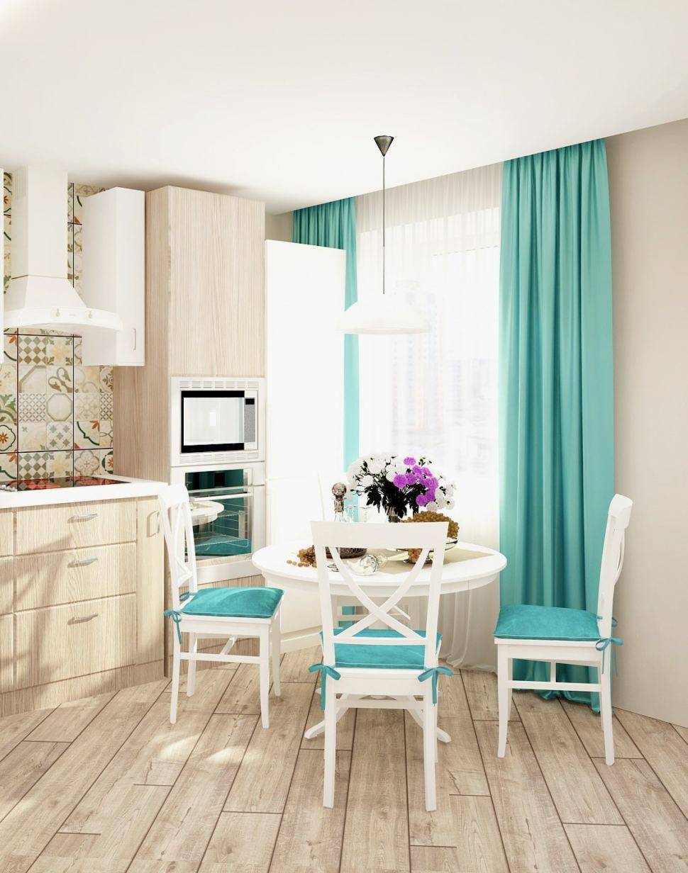 Нельзя не упомянуть и мелкие детали: чайник, тостер, миксер, посуду, цветочные горшки, шторы, скатерть, которые могут быть как мятного цвета, так и контрастного.