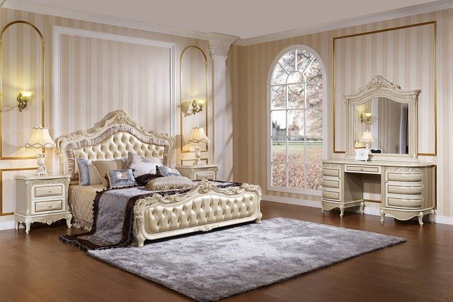 Мебель должна выглядеть изысканно и призвана концентрировать внимание на том, что владелец может себе это позволить. Спальни, оформленные в этом стиле, богаты декоративными элементами и деталями