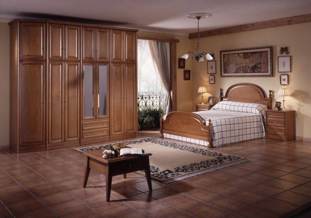 Только высококачественным породам дерева позволено украшать спальню в классическом стиле. К обстановке с коричневой мебелью лучше всего подходит отделка бирюзовым, кремовым, бежевым и золотым цветами. Чтобы оттенки мебели выглядели благородно и презентабельно, фасады покрывают слоями красно-коричневого, шоколадного или каштанового лака, сохраняя при этом текстуру древесины.