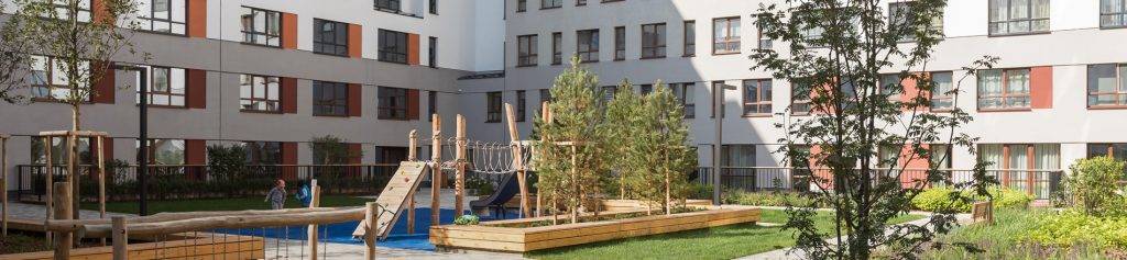 Внутренний двор ЖК «Шишимская горка» благоустроен и озеленен. Здесь расположатся разновозрастные детские площадки, где будет интересно и малышам, и подросткам. Для автовладельцев предусмотрена подземная и гостевая парковка