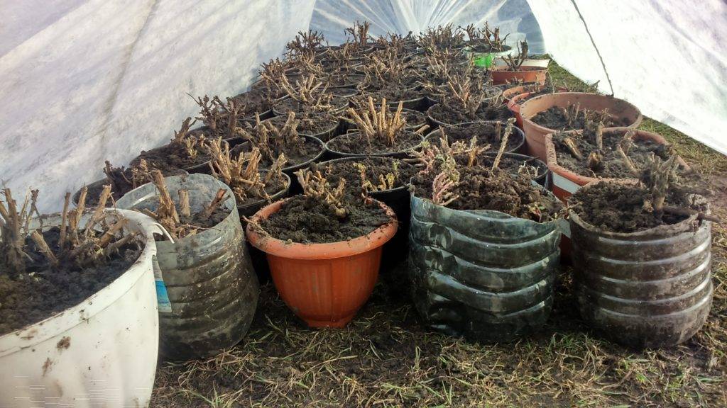 Крупноцветковые сильнорослые сорта очень теплолюбивы и поэтому они не способны зимовать в грунте при выращивании в средних широтах. Однако их можно сохранить, и для этого придумано немало способов. К примеру, куст извлекают из почвы и вместе с земляным комом помещают в ящик, сделанный из дерева. Затем его переносят в хорошо освещенное, но холодное помещение (от 2 до 6 градусов), при этом влажность воздуха должна быть на уровне 80 процентов. Если кустиков мало, то для их посадки используют индивидуальные емкости. Систематически поливайте их, при этом следите, чтобы земляной ком был все время немного влажноватым.