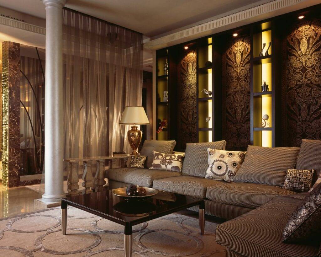 Восточному стилю присущи теплые богатые цвета, особенно красный с золотом. Мебель здесь удобная и низкая, преимущественно из дерева с инкрустацией