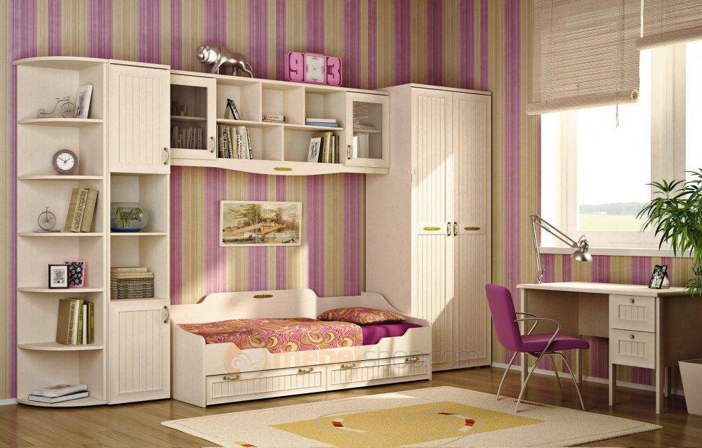 - все предметы должны сочетаться с отделкой стен. Если используются обои с узорами, то мебельный гарнитур следует подбирать с небольшим количеством маленьких деталей;