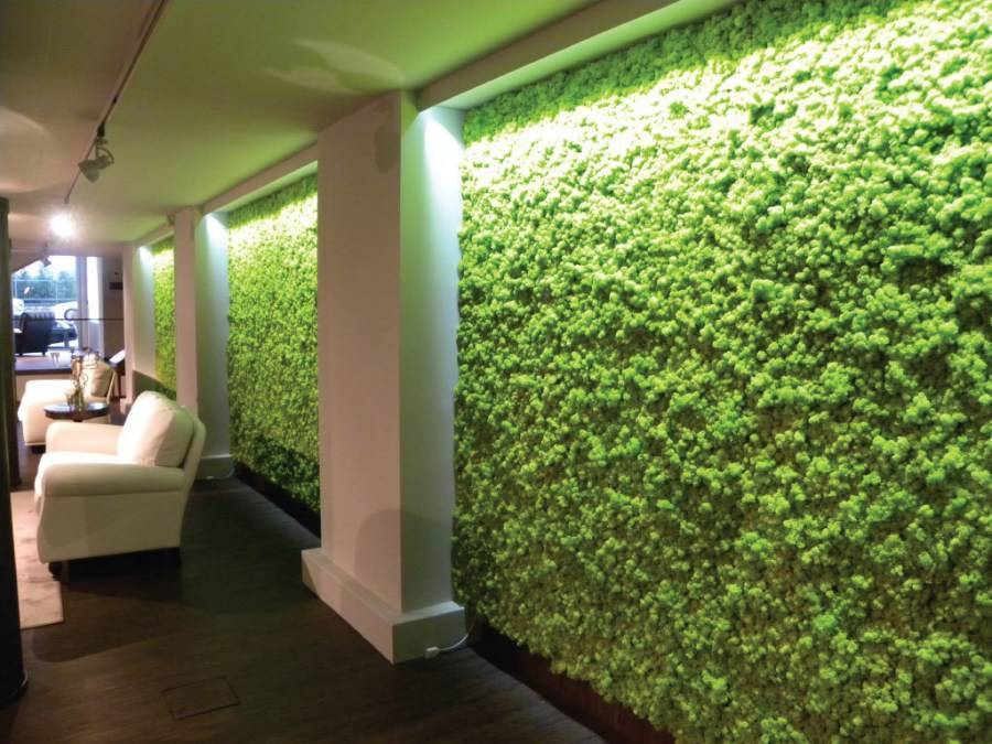 Пожалуй, самый популярный вариант — это украшение кабинетов, магазинов, жилых помещений стенками из мха.