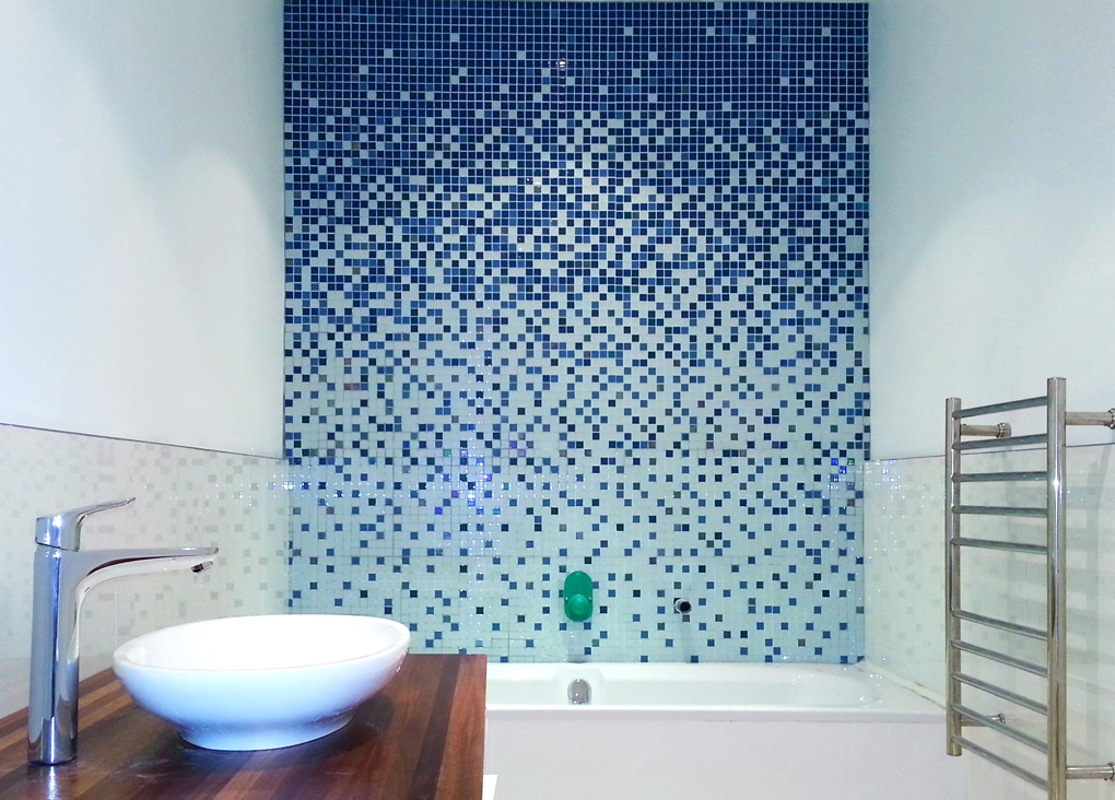 Для напольного покрытия клей нужно подбирать более эластичный. Отделка ванной мозаикой из цветного стекла — сложный технологический процесс, который нужно отдать в руки профессионалу.