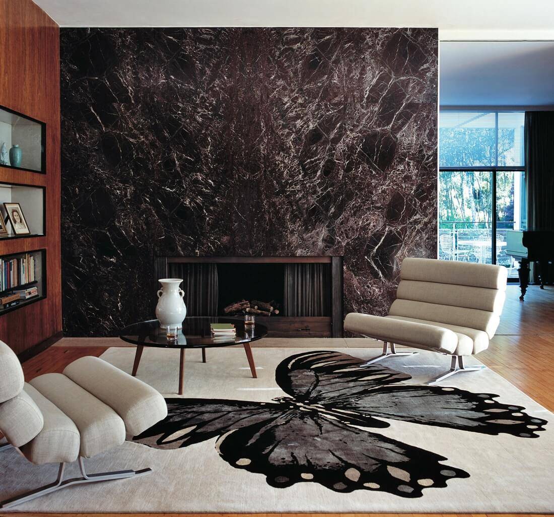 И всё же, главным по приоритету помещением, где мы можем чаще всего встретить ковёр, это гостиная. Как правило, это самая большая комната, которая позволит любой эксперимент, главное — помнить про правила размеров и сочетаемости!