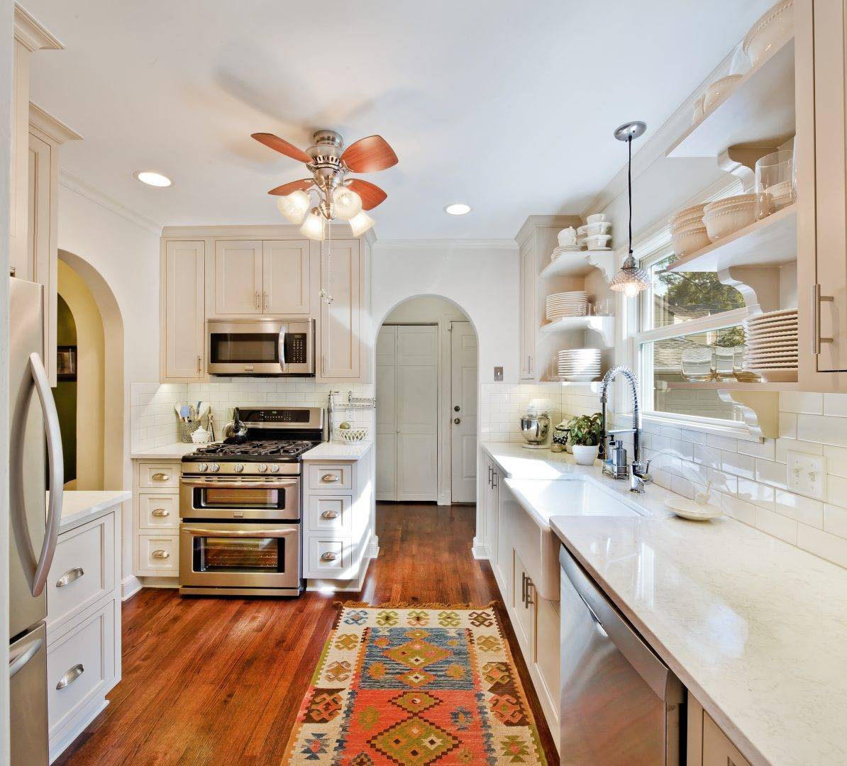 Существует несколько вариантов размещения ковра на полу на кухне. Например, вы можете положить небольшой коврик возле раковины. Это оправдано с точки зрения здоровья — тут проводится достаточно много времени, кроме того, иногда на пол попадает вода и вы вынуждены стоять на мокрой поверхности.