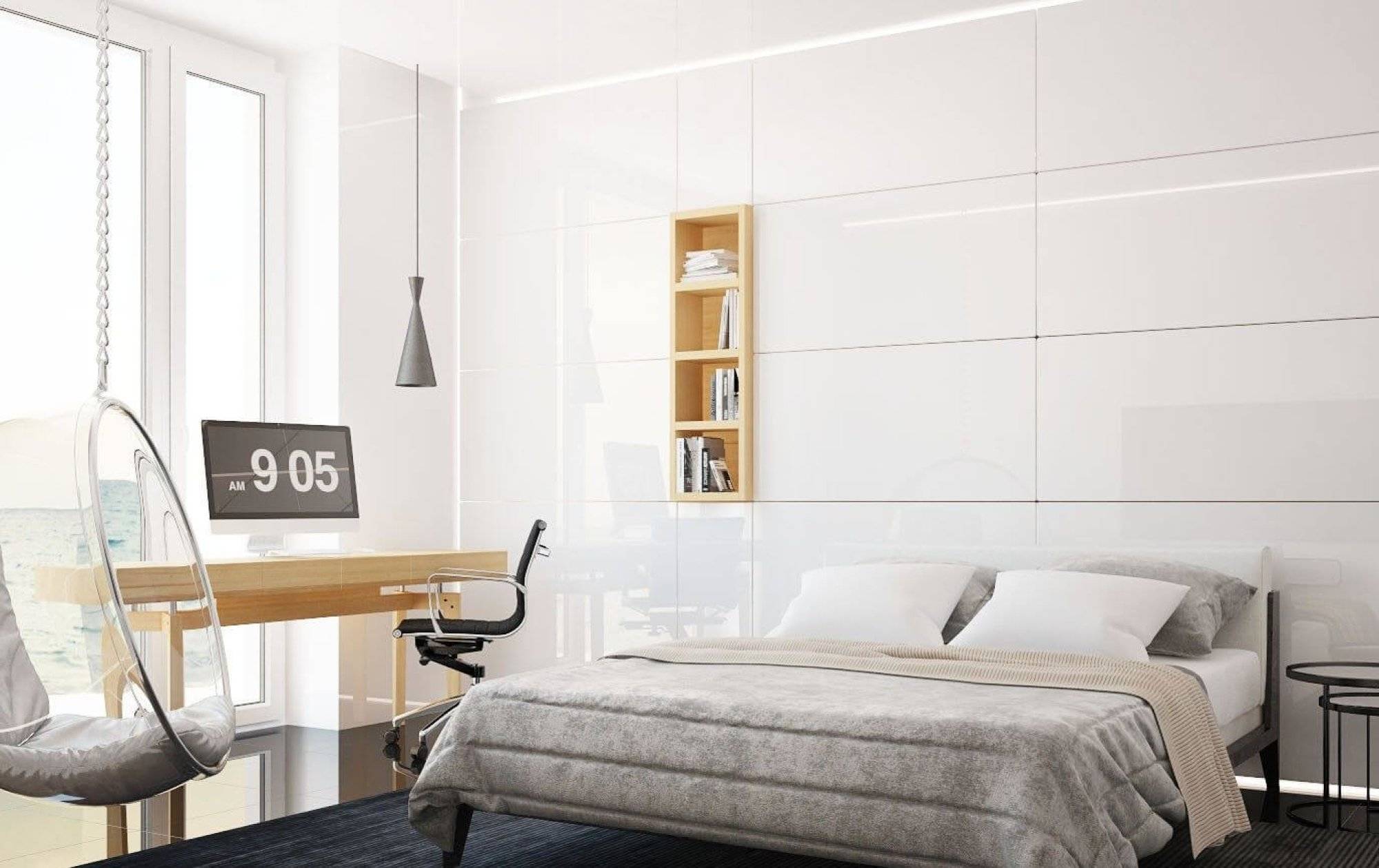 Минимализм гораздо интереснее и отлично подойдет для оформления мужской комнаты. Особенно, если вы ограничены в площади. Функциональность и простота — главные принципы и достоинства этого стиля.