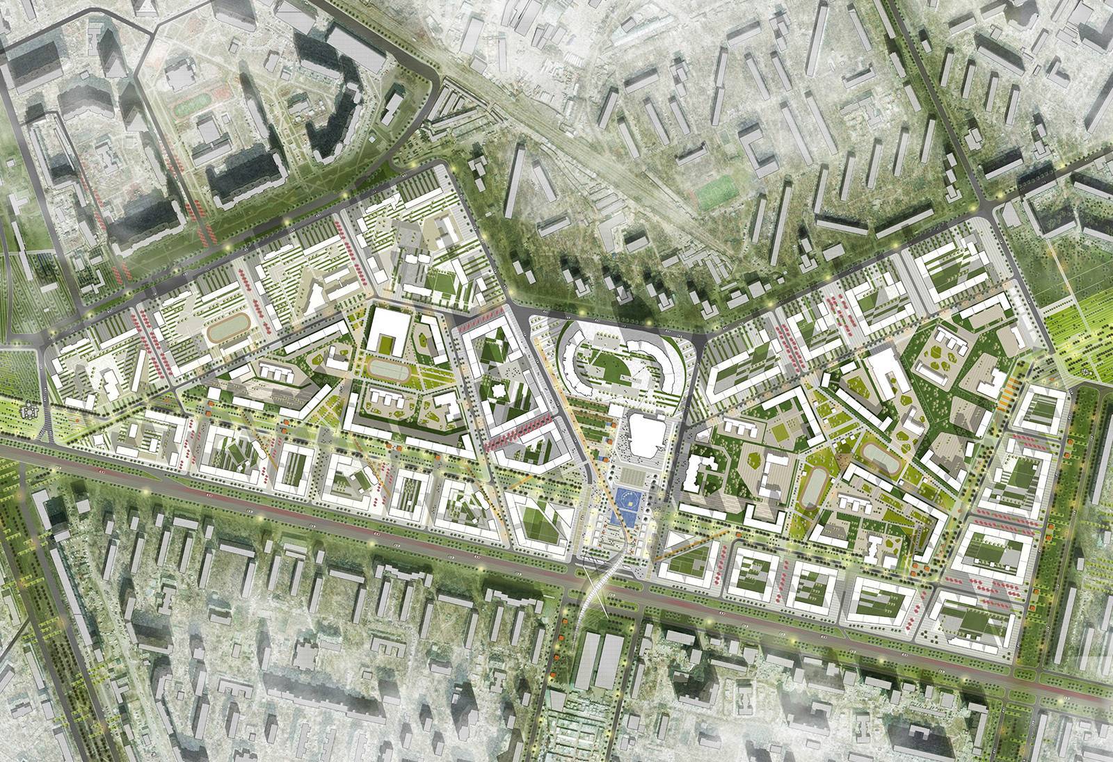 Проект предполагает создание нетиповой разновысотной застройки преимущественно в 6-8 этажей. В районе появится вся необходимая социальная инфраструктура: 12 детских садов, семь школ, две поликлиники, художественная и музыкальная школы.