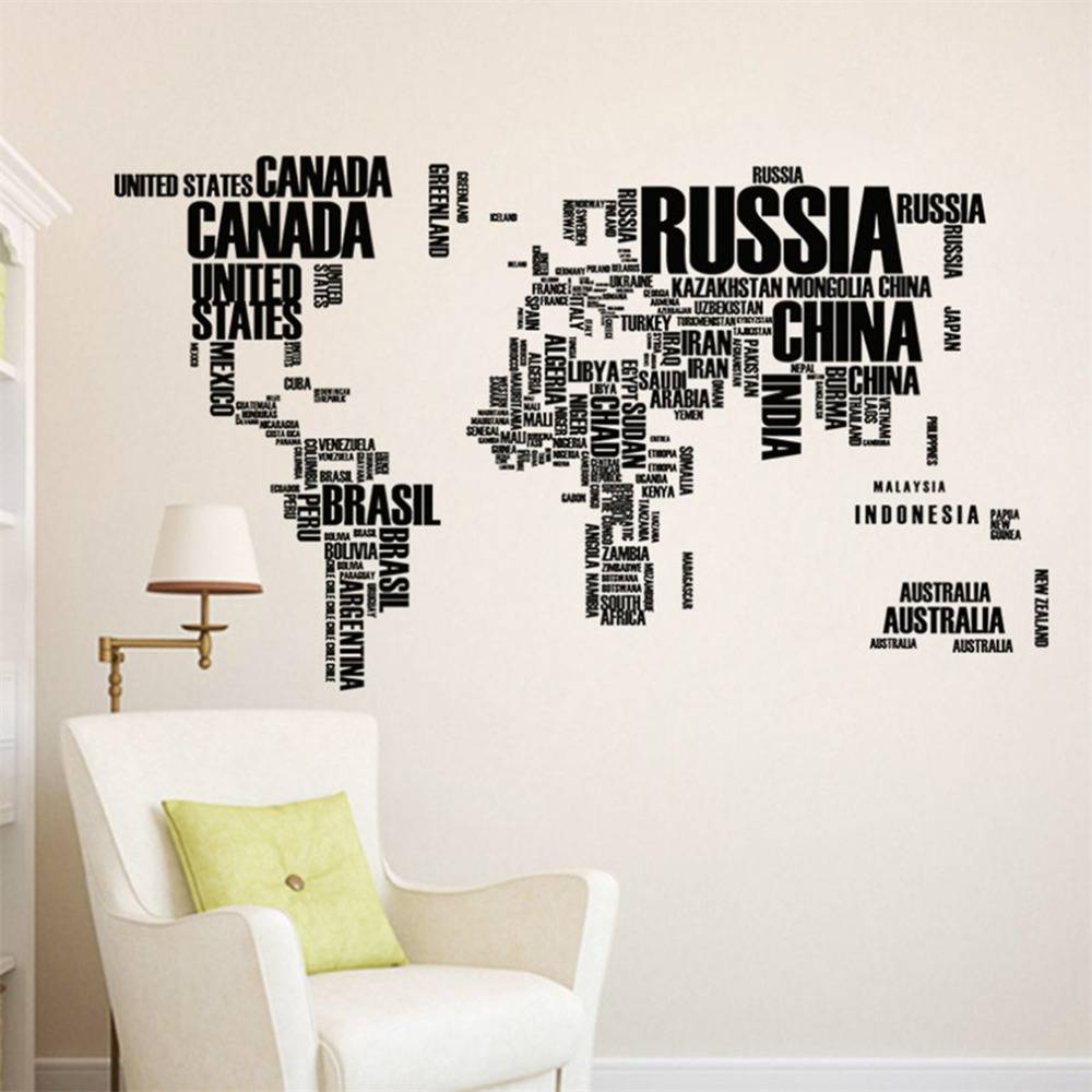 - Наиболее удачно текстовый декор смотрится на фоне однотонной стены. Если на обоях есть рисунок, желательно выбирать надпись в рамке. В противном случае слова не будут отчетливо видны.
