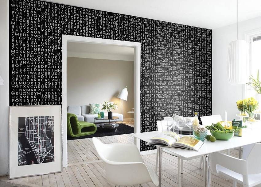 Обои с буквами и текстом: применение в интерьере