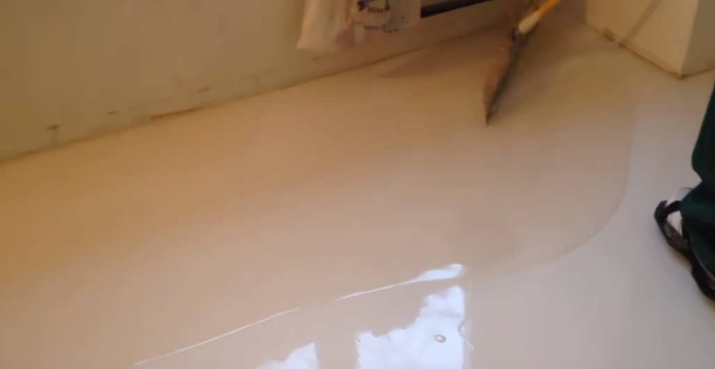 Перед заливкой состава нужно убедиться в том, что пол абсолютно сухой.