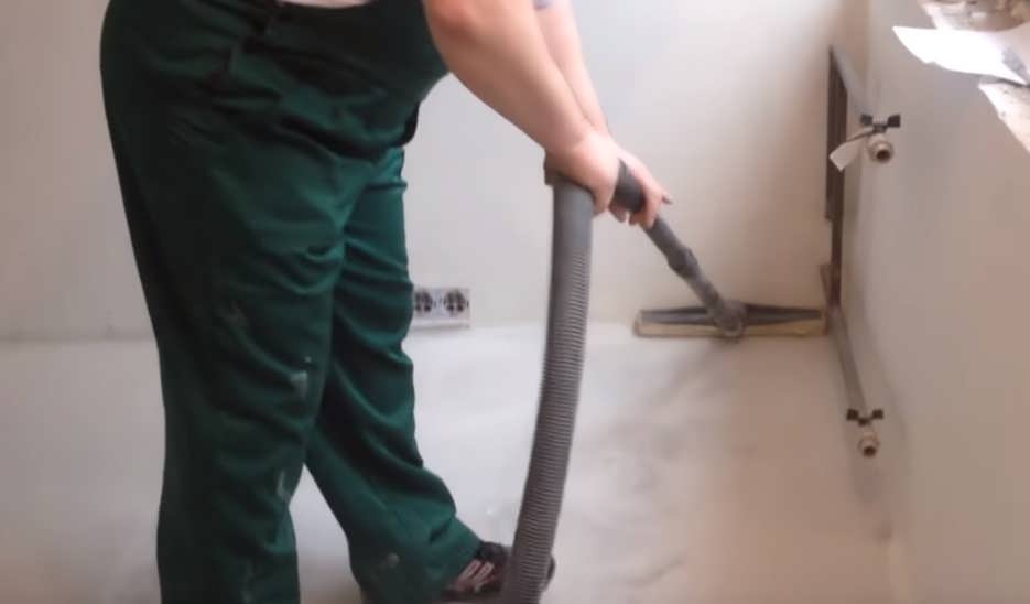 - На следующем этапе производится полная уборка поверхности от пыли с помощью пылесоса или влажной тряпки.