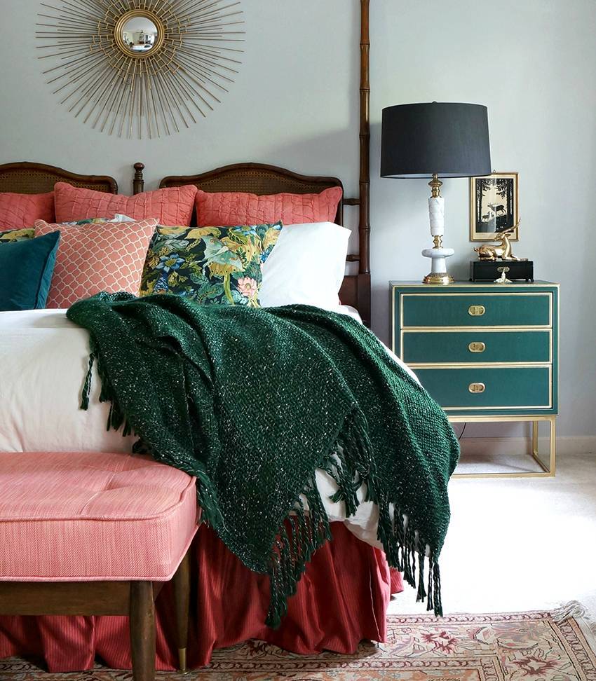 Прикроватные лампы с обеих сторон кровати также создадут дополнительную симметрию в интерьере комнаты. Свет прикроватной лампы, как правило, распространяется на одно спальное место, что не мешает другому члену семьи спокойно спать.