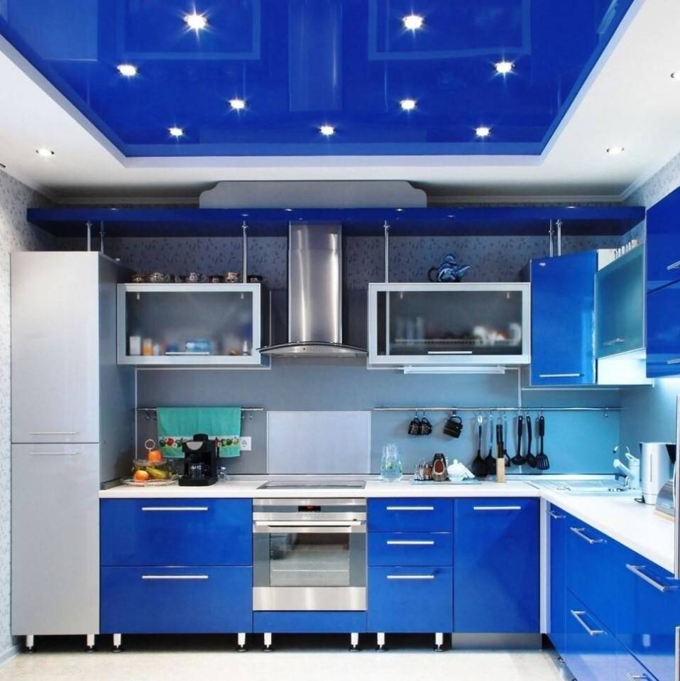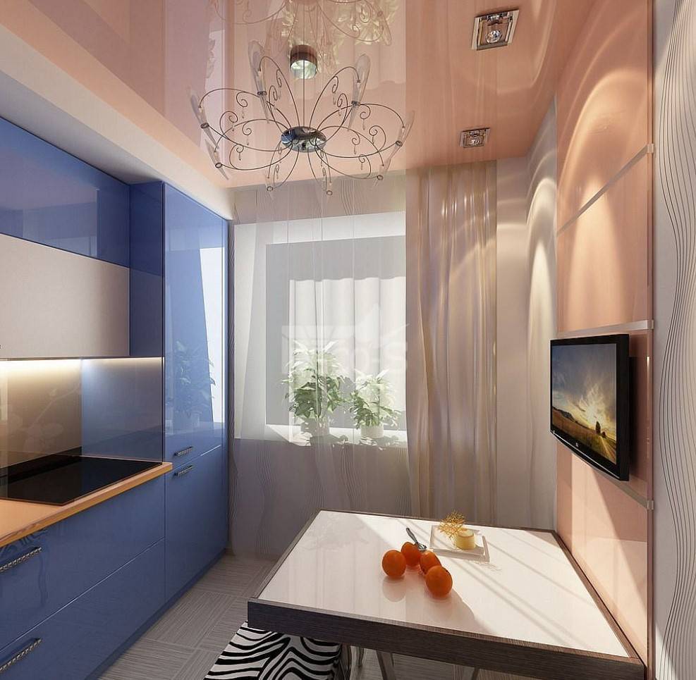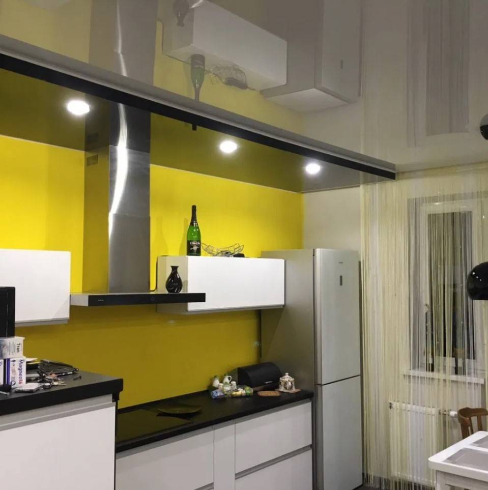 Кухня, совмещенная с гостиной и натяжные конструкции в ней