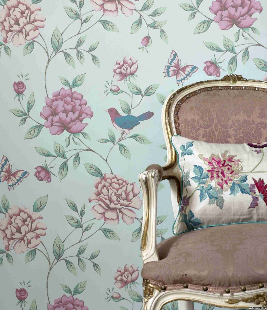 На голубом фоне обоев могут соседствовать оранжевый, жёлтый, зелёный и синий цвета в одном варианте, а в другом гамма может быть совершенно противоположной — с использованием сиреневого и розового оттенков, какие из них выбрать, можно определить по оттенкам на обоях.
