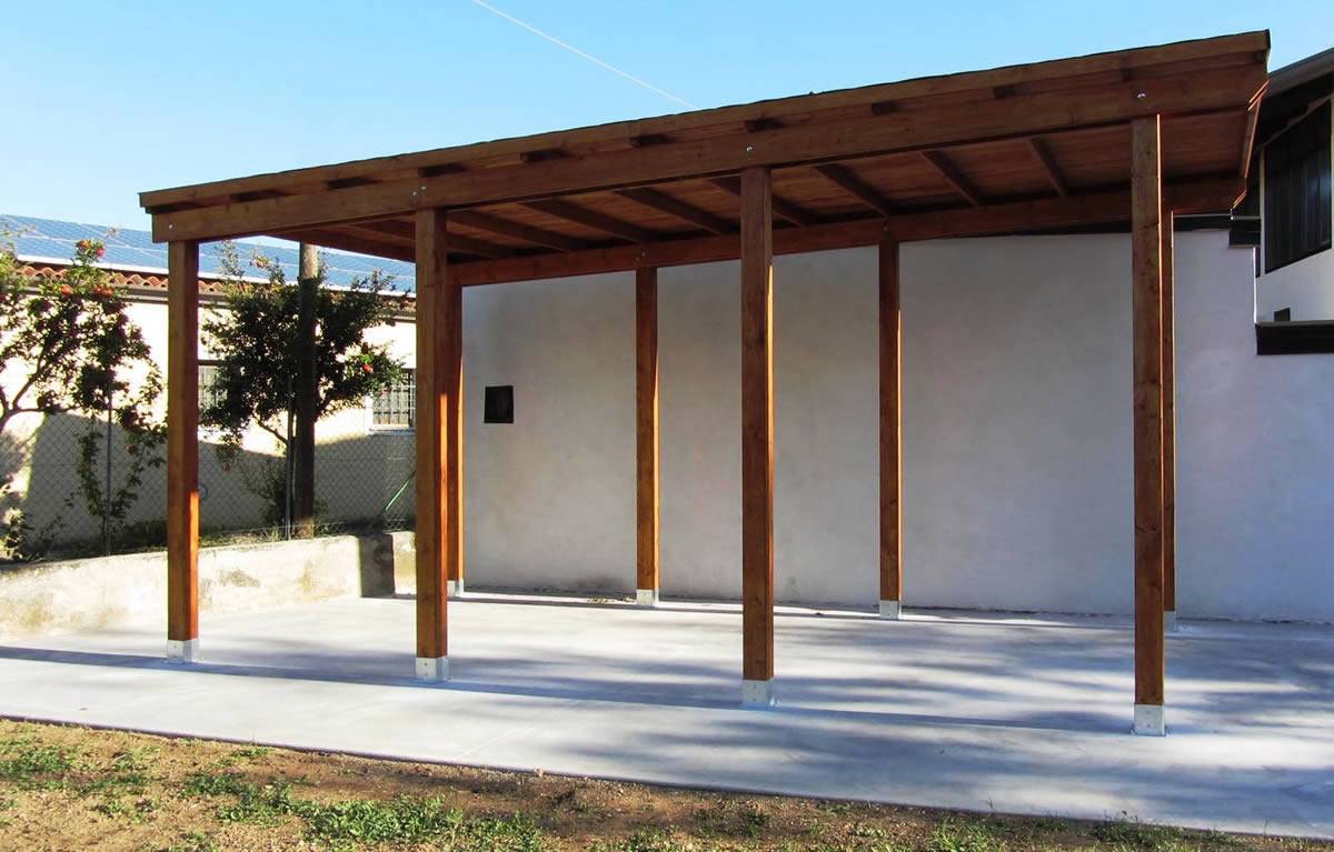 Каркас для постройки около дома часто делают из деревянного бруса или металлической трубы. Также конструкции рядом с домом сооружают из кирпича или камня, а также заливают цементными опорами.