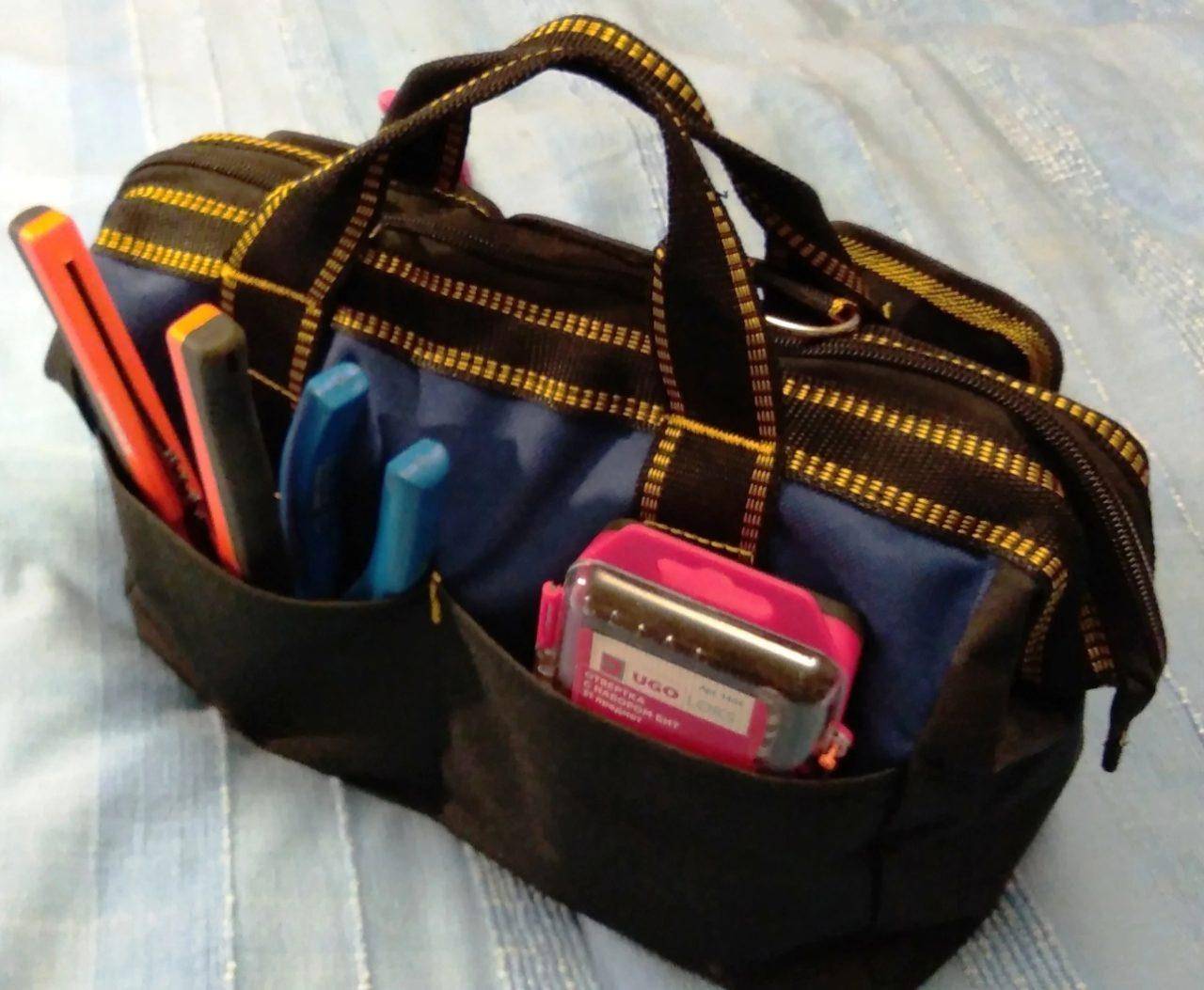 Без способной вместить все инструменты сумки просто никуда, и эта штуковина от AIRAJ отлично справляется со своей главной обязанностью – весь арсенал электрика свободно помещается в её многочисленных карманах и отделениях. Особенно мне нравится большой выбор: а зависимости от того, насколько велик ваш арсенал инструментов, можно взять сумку на 13, 15, 17 дюймов – и так далее с шагом в 2 дюйма вплоть до 23.