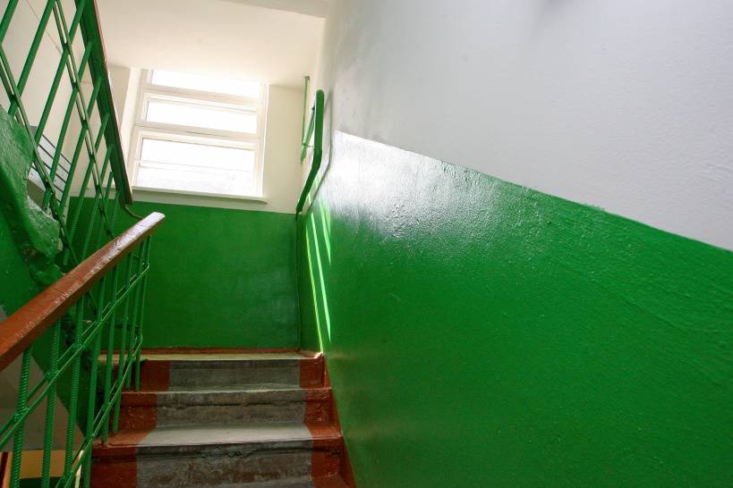 Советские постройки были прагматичными, каждый квадратный метр был рассчитан с учетом потребностей жильцов. Ширина лестничной площадки позволяла разминуться людям, пронести пожитки, типичную мебель, носилки и… гроб. Чтобы у проживающих в подъезде не возникало ощущение замкнутости, потребовалось избавиться от однотонности.
