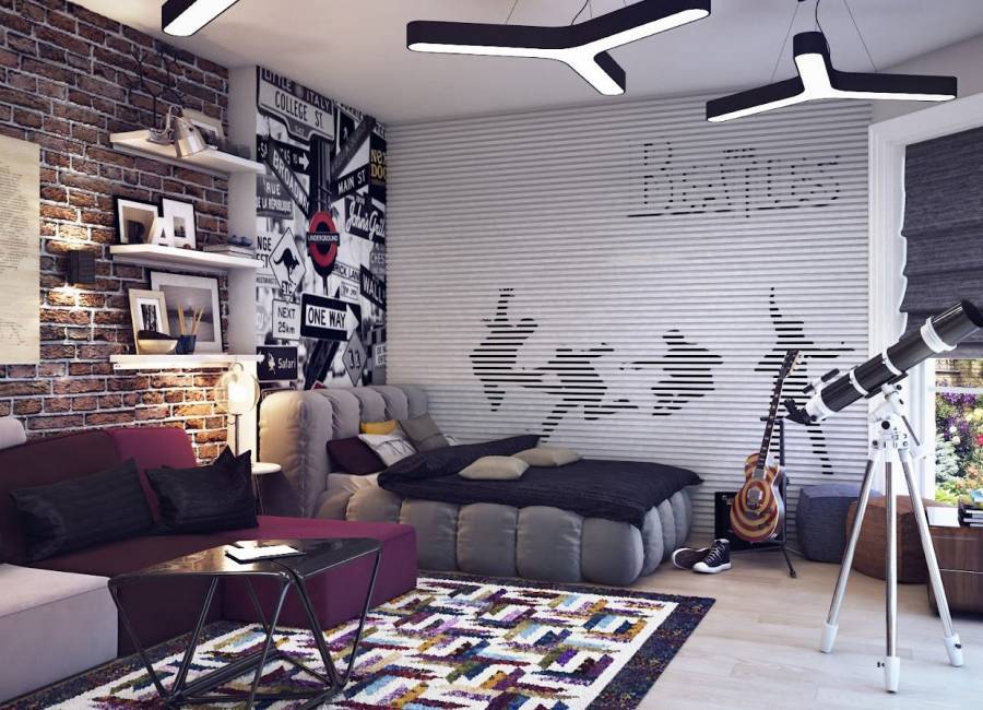 Дизайн комнаты в современном стиле лофит