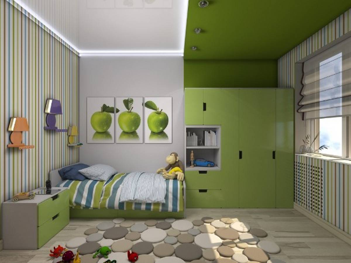 Исходя из норм освещенности и площади детской комнаты, а также высоты ее потолков варианты могут быть следующими.
