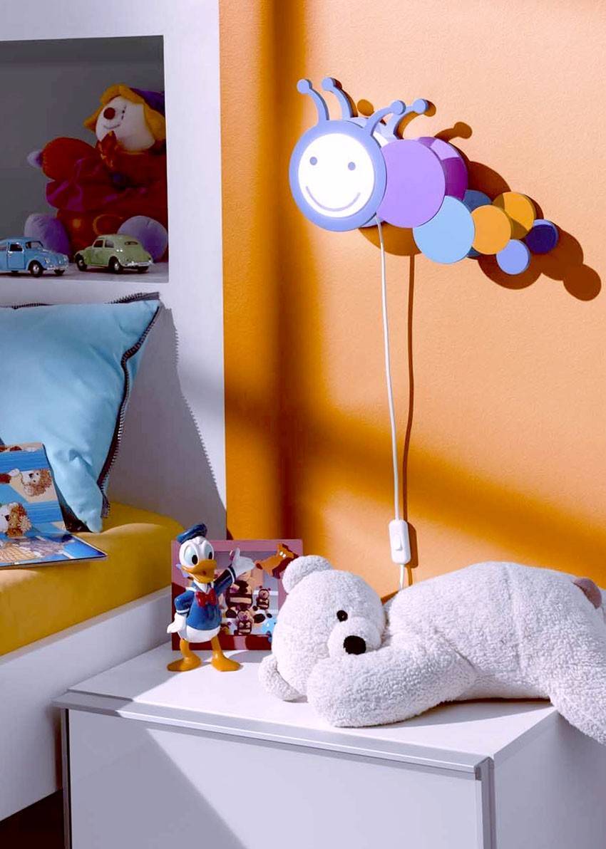 Безопасность играет ключевую роль при эксплуатации детских светильников и ночников, поэтому они могут крепиться либо на стену, либо устанавливаться на прикроватную тумбочку
