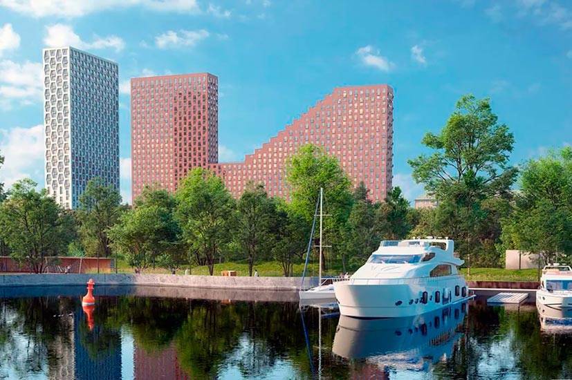 Составят комплекс пять монолитных домов высотой от 11 до 35 этажей. Интересно, что почти у каждого корпуса был свой архитектор, поэтому у них различается даже отделка фасадов. В то же время стиль у всех выдержан примерно один – минималистичный урбанизм. За это поблагодарим АЕСOM, который взял на себя концепцию всего квартала и как-то сумел уместить в место с производственным прошлым уютное скандинавское Хюгге.
