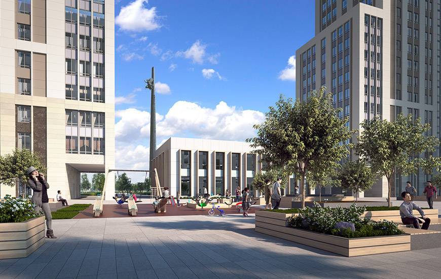 В первую очередь объекта, которая должна быть сдана уже во втором квартале 2019-го, войдёт пять монолитно-кирпичных 23-этажных домов от архитектурной мастерской ADM. По крайней мере по рендерам проекта заметно, что над его внешним видом провели серьёзную работу – дома эти одновременно и уютные и наверняка комфортные внутри, и очень стильные, с редкими оттенками фасадов, с индустриальной кирпичной кладкой, с высокими и широкими окнами. Но застройщик предлагает покупателям не просто корпуса, а целую “LIFE”, “жизнь” – на огороженной и благоустроенной территории квартала появятся детские и спортивные площадки, на первых этажах откроются коммерческие помещения, а уже вместе с первой очередью должен быть сдан детский сад.
